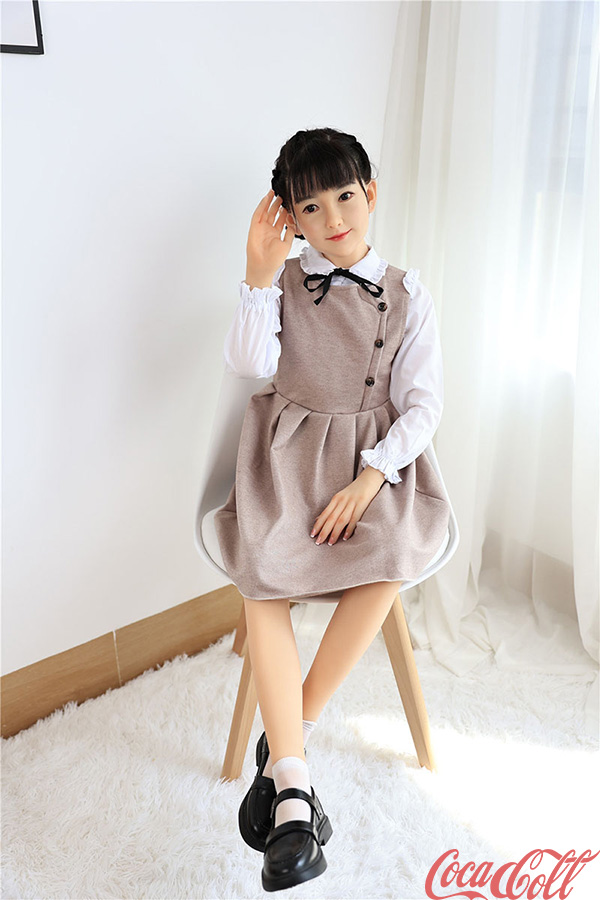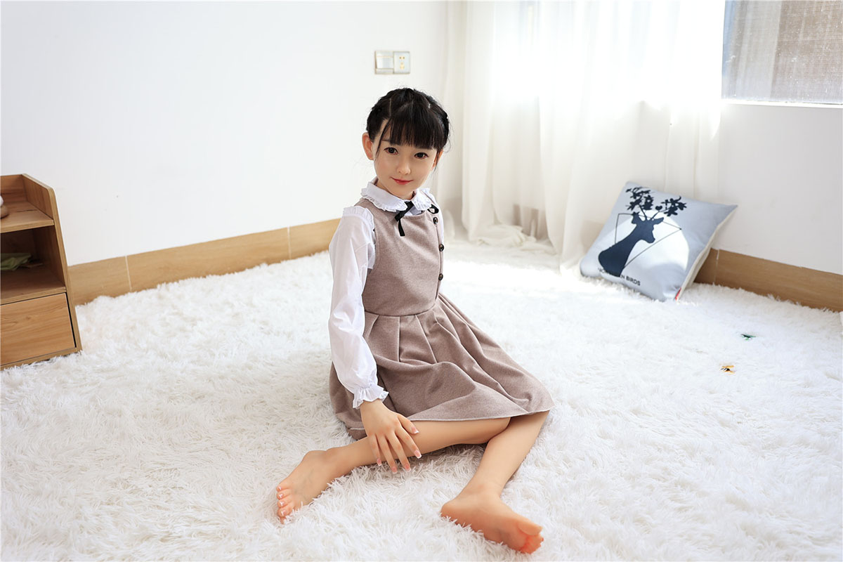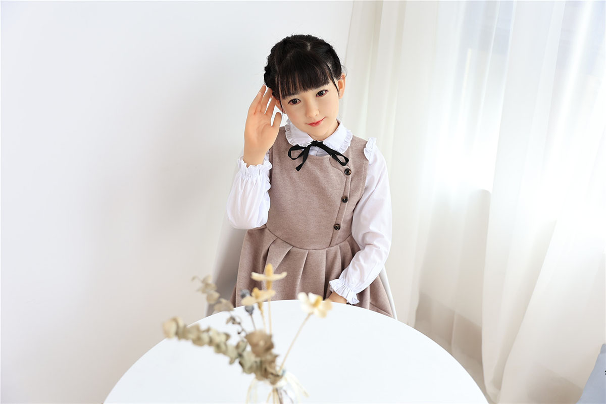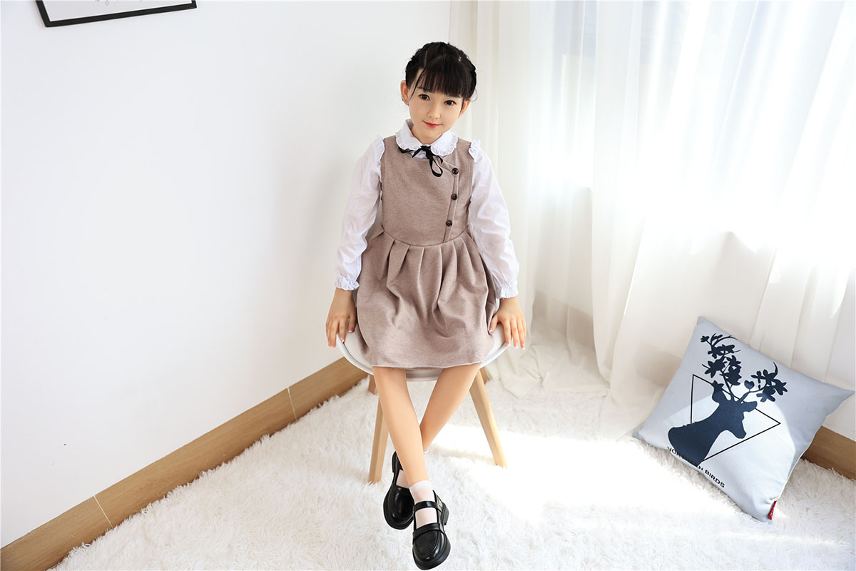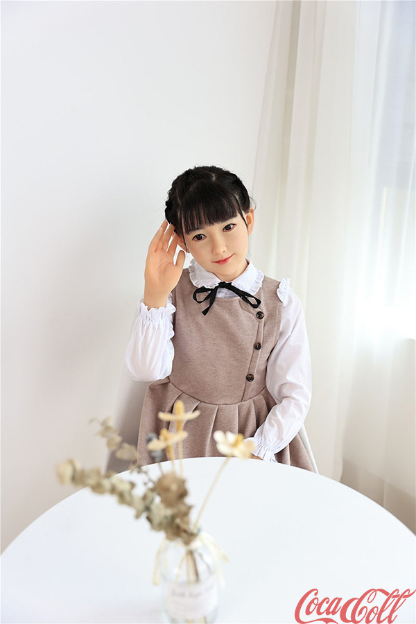 With her long black twin braids, large innocent eyes, delicate features, and that gentle, shy expression with a soft hand wave, Yatong radiates pure sweetness. At 138cm with dainty A-cup proportions, this adorable premium silicone companion doll offers a lightweight, youthful figure charmingly dressed in a beige pinafore dress over a white blouse with black bow that highlights her slender form and endearing innocence. Made from high-quality silicone, she feels warm, velvety soft, and beautifully detailed in every gentle curve.