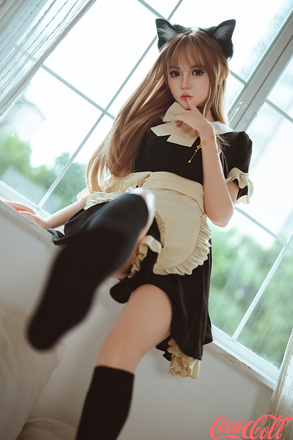 With her long silky blonde hair, sparkling eyes, delicate features, and that cute teasing expression, Xiaodai looks ready to serve with a playful wink. Standing at petite 149cm with sweet B-cup curves, this maid sex doll boasts a tiny figure wrapped in a classic black maid dress, white frilly apron, large bow, cat ears, and thigh-high stockings that highlight her smooth skin and adorable proportions. She's ultra-lightweight, easy to pose and hold, and full of seductive cosplay charm in every detail.