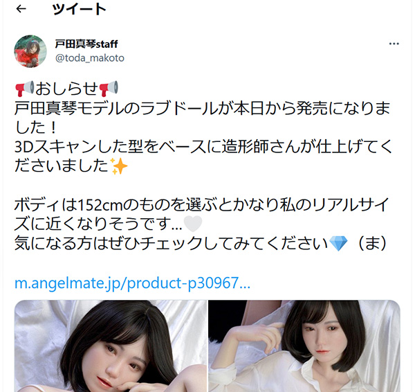 This is a sex doll that restores the real photo of Makoto Toda (戸田真琴). The white see-through shirt reveals the sexy underwear inside. The black wrap-around skirt fit her tight buttocks just right. Her face uses real human body makeup, and the lines on the palms and soles of her feet have been restored. Even if you tear off her underwear, she won't have any resistance. All your rude requests are not rude to her, they are normal, and you don't need to suppress your sexual impulse. Experience the excitement and great sex in adult movies with ease.