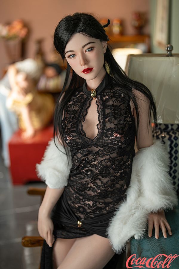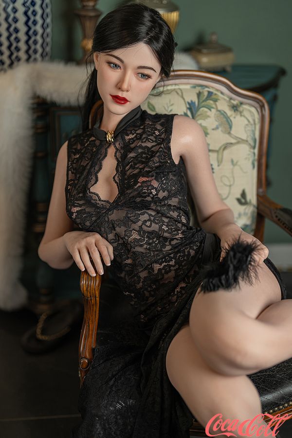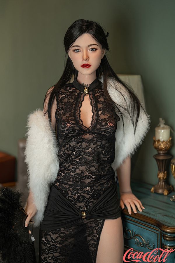 176cm/5ft9 C-cup Black Lace Cheongsam Feather Fan #Kelly Silicone Sex Doll