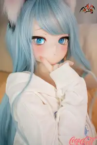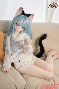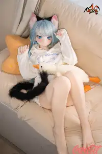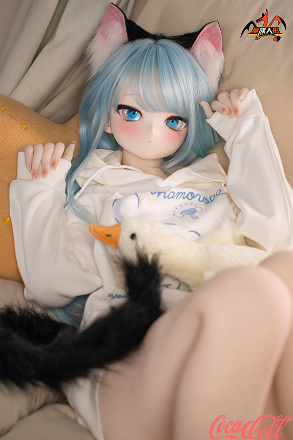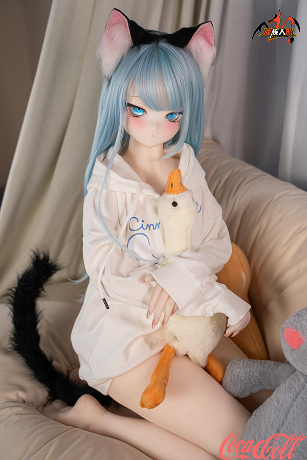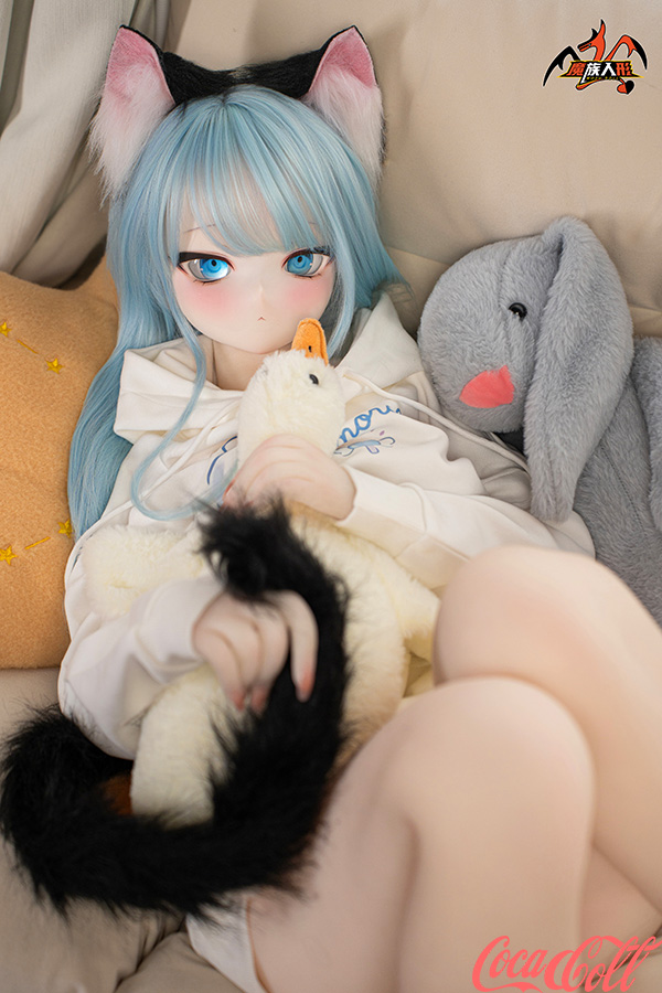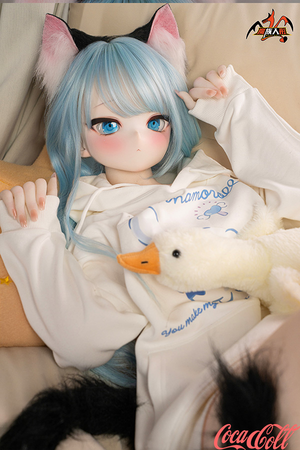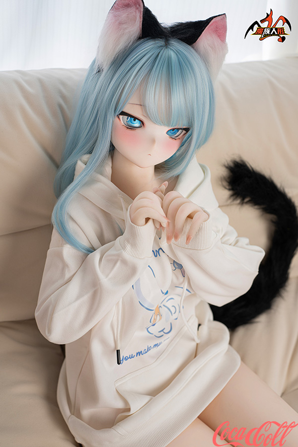 With her vibrant light blue hair, adorable cat ears, sparkling blue eyes, fair skin, and that playful, youthful anime expression, Mint brings fantasy charm to life. Standing at 141cm tall with a slim, toned frame, this anime-inspired sex doll has a perfectly proportioned body dressed in a cute white hoodie and shorts for a cozy, fun vibe. She's easy to pose, hold close, and feels soft, supple, and full of detailed seductive allure in every curve.