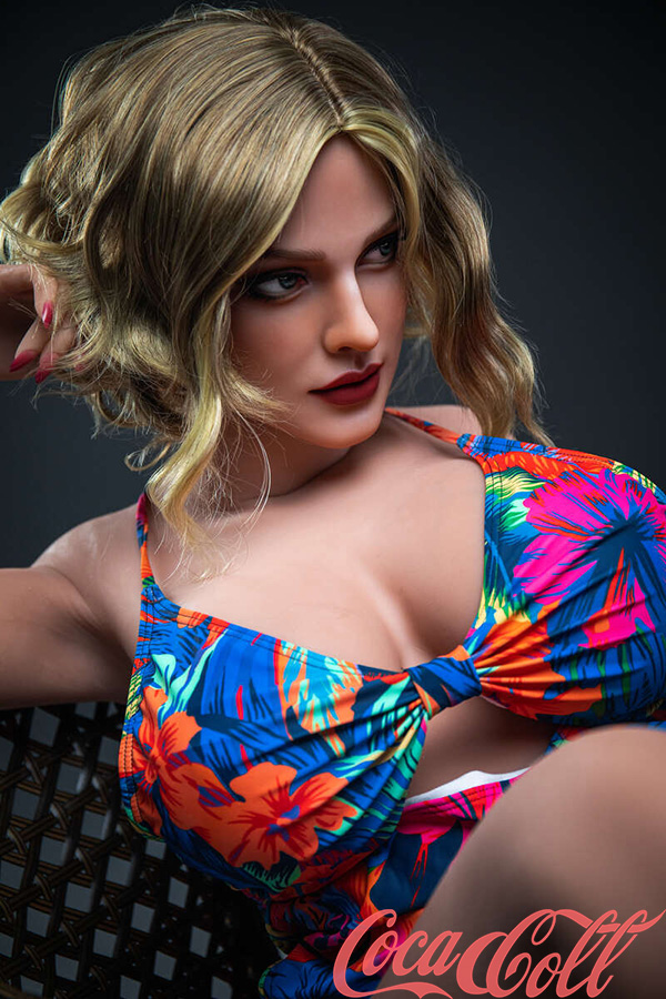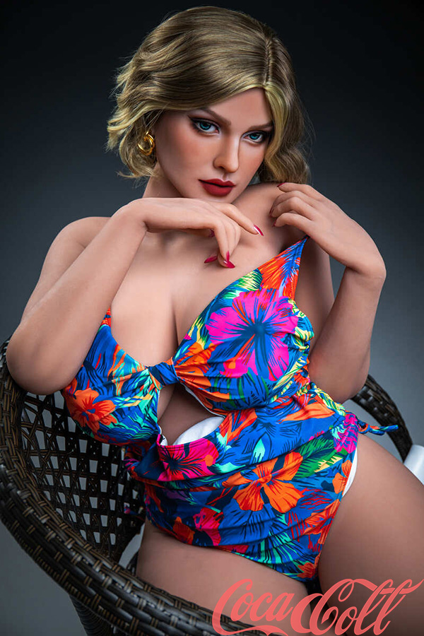 European girl on vacation wearing bikini resting on sofa. Her lips were painted with bright red lips and she looked seductive. She looked carefree at this moment. Her skin was bronzed in the warm Mediterranean sun, giving it a healthy glow that complemented her natural beauty. This European sex doll's hair is short, but looks perfect with her sculpted features. She showed off her impeccable taste and European flair in a stylish and colorful bikini. The bikini is cut to fit so perfectly that you can see her sexy curves. Maybe you think the breasts of an H-cup woman may be a bit exaggerated. But the H-cup breasts of this mega breasts sex doll fit perfectly with her beautiful figure, and they don’t feel exaggerated at all.