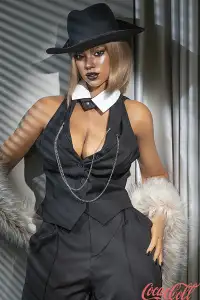 With her sleek short blonde hair, intense smoky eyes, bold lips, and confident demeanor, Tyra radiates powerful allure. Standing at 164cm with generous E-cup curves and an hourglass silhouette, this curvy realistic sex doll is dressed in sophisticated black attire with fur trims and chains that accentuate her dark tanned skin and striking presence. Warm, supple, and expertly crafted, she delivers immersive realism in every bold line and soft contour.