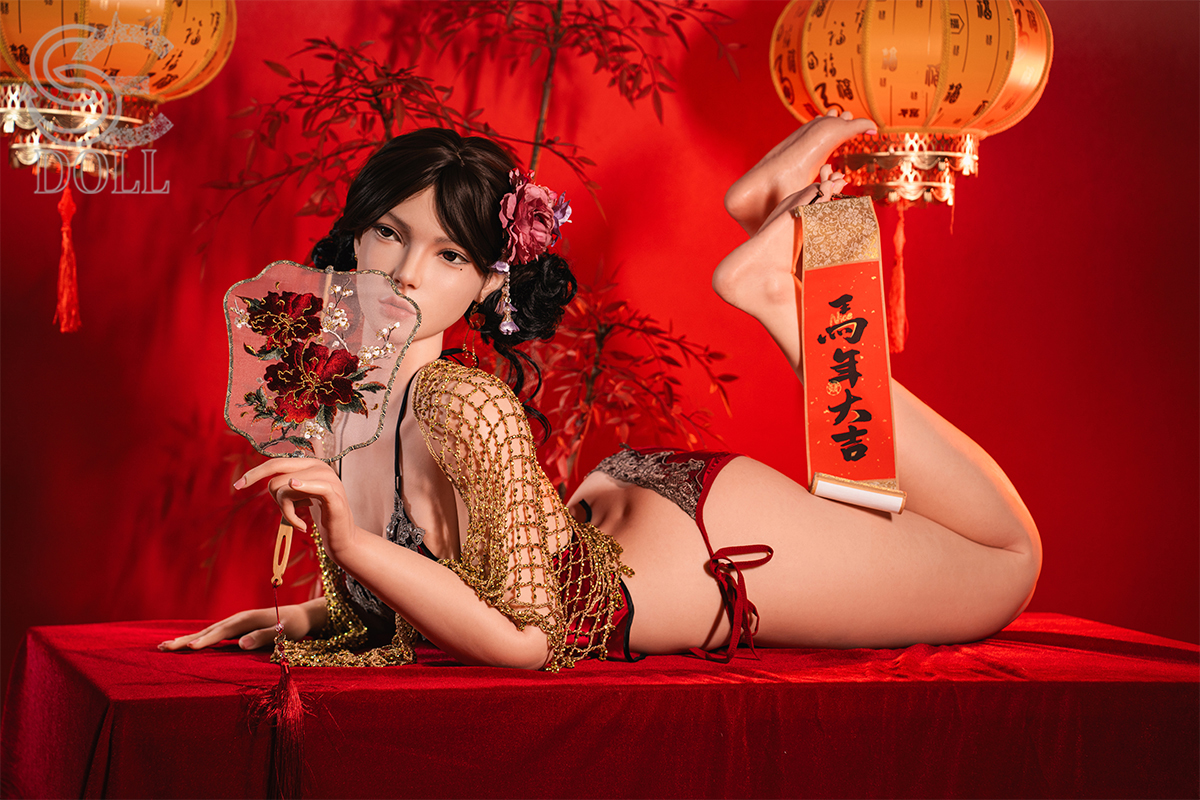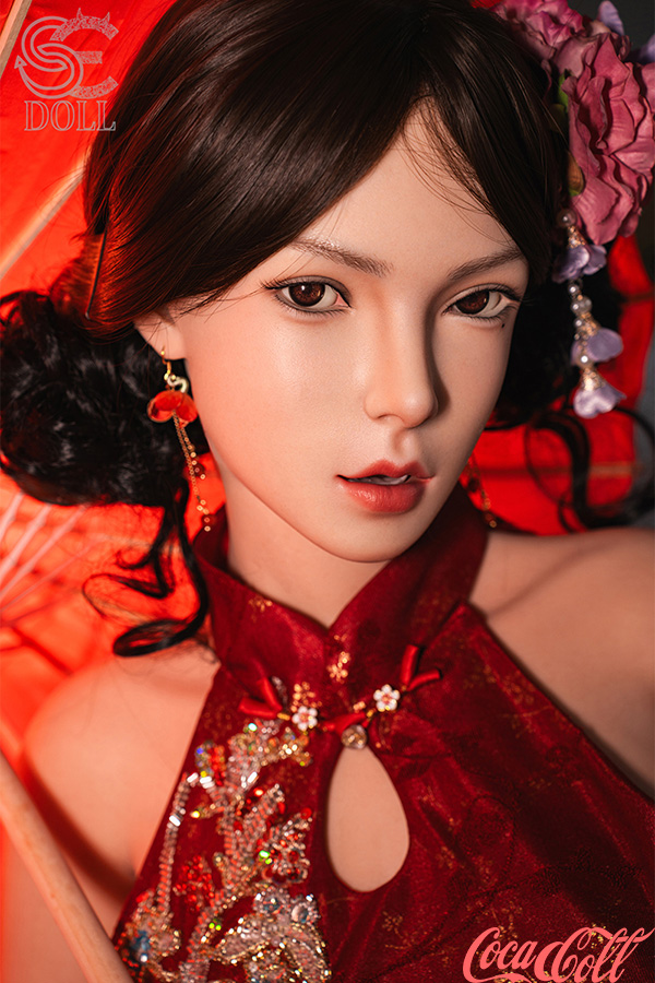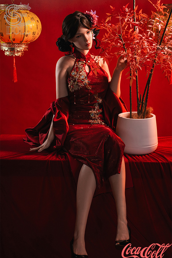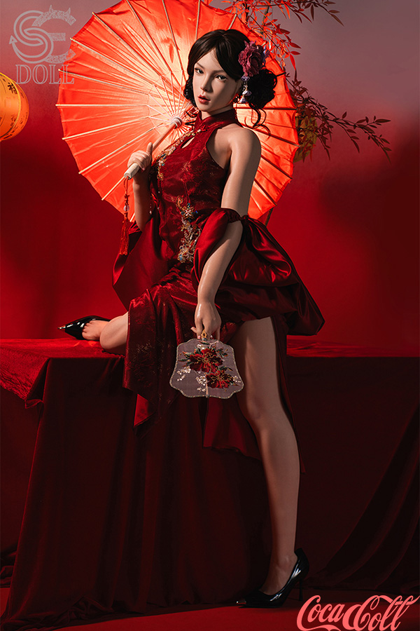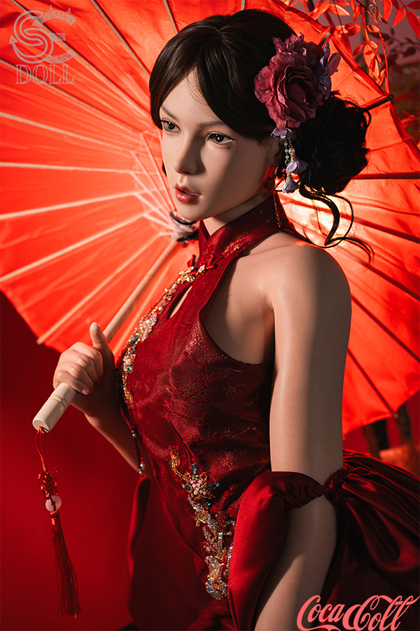 With her sleek dark hair in an elegant updo adorned with flowers, refined features, soft gaze, and that serene yet alluring expression, Lumi.B embodies timeless Asian beauty. Standing at 165cm tall with balanced C-cup curves, this Asian sex doll wears a stunning red cheongsam featuring delicate embroidery, high slits revealing smooth legs, and holds a bold orange umbrella for a dramatic, romantic flair. She's crafted from full silicone with realistic skin texture, highly poseable, warm, and supple to the touch.