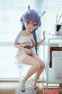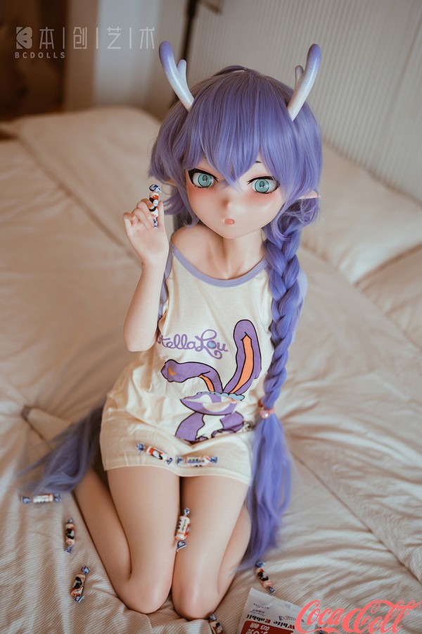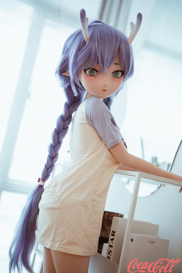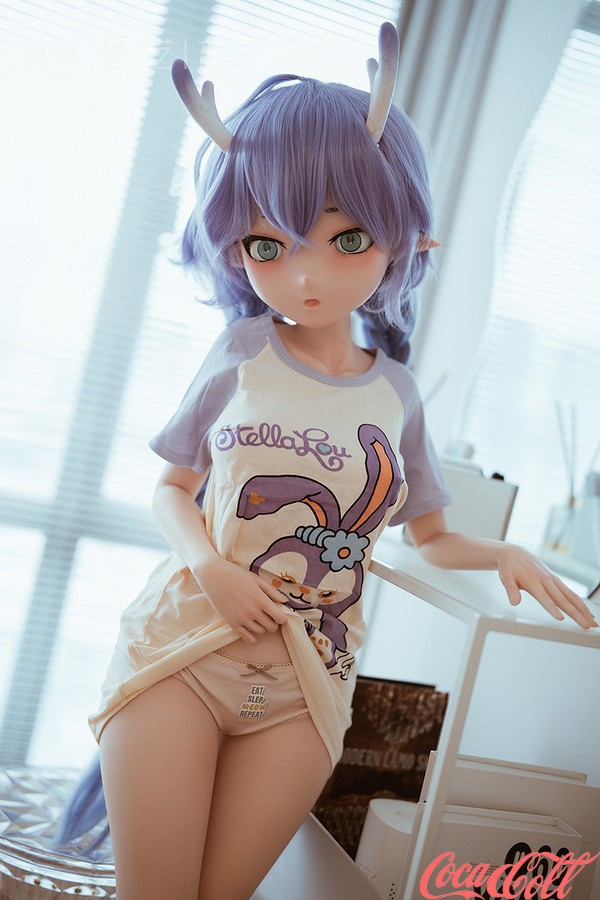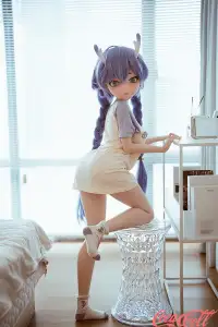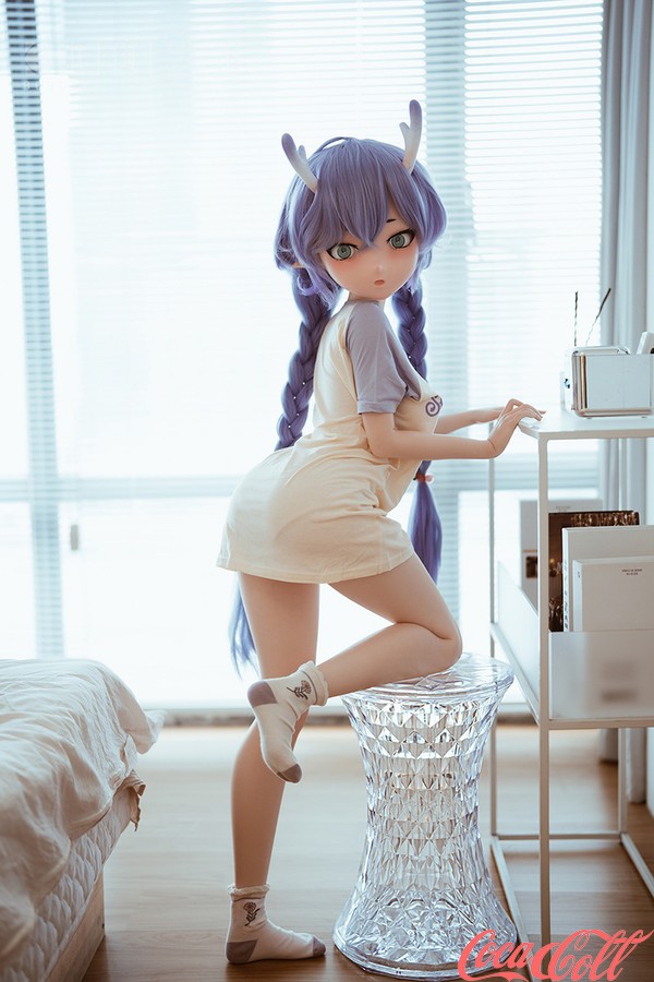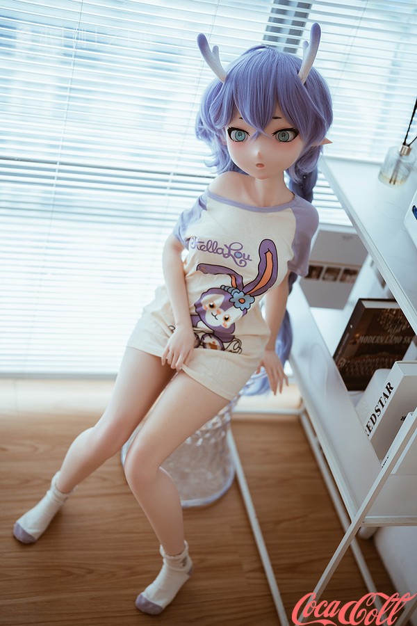 Inside a brightly lit room, a cute little elf sits obediently on a stool, occasionally glancing around with curiosity at the room's furnishings. This anime real doll's lush purple hair has been gathered and braided into pigtails on either side, revealing her pointed elven ears; atop her head grow two slender horns, displaying a gradient shift from white at the base to purple at the tips. Her petite, lithe frame is clad simply in an oversized T-shirt—more than enough for her—while on her feet, she wears nothing but a pair of socks. At times, the teen love doll stands beside the desk, tentatively exploring every object that piques her curiosity; at other moments, she happily tumbles about on the large, comfortable bed, bouncing up and down on its wonderfully springy mattress. When she grows tired, she lies down to rest, patiently awaiting your return.
