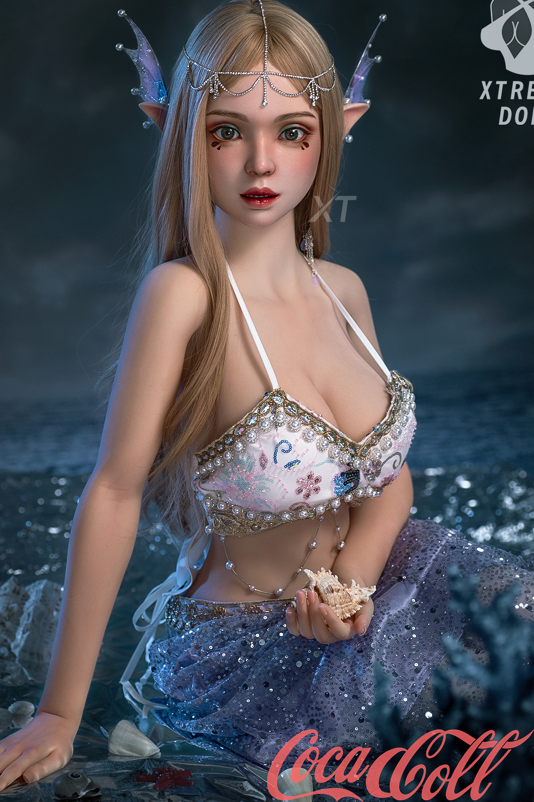 In the fairy tale, the Little Mermaid ultimately fails to be with her beloved prince and meets a tragic end, transforming into foam. But now, if you were that prince, would you be willing to rewrite this ending? The girl depicted in the picture may not be the Little Mermaid, but she is an elf from the same realm. Her golden hair is woven by the gentle first rays of morning sunlight, and her eyes are as mysterious as the vast universe. Do not attempt to gaze directly into her eyes, for doing so would trap your soul within. Crystal-clear, deep blue waters converge into her skirt, and all these signs indicate that such an ethereal and unreal beauty can only come from another dimension. Of course, this elf ears sex doll also has an earthly aspect. Her slender figure resembles a delicate artwork. However, this masterpiece born from the ocean does not inspire reverence for art but rather sets the blood boiling and disrupts one's breathing. Her E-cup breasts provide a strong visual impact. Additionally, this big breasts sex doll has a firm buttocks, especially evident when she is on all fours. I believe you will greatly appreciate this posture as her sinuous curves are a love potion. She is such a being, embodying both ethereal and sensual qualities. This time, do not reject her and break her heart. Be resolute in becoming the prince who can make her willing to give everything.