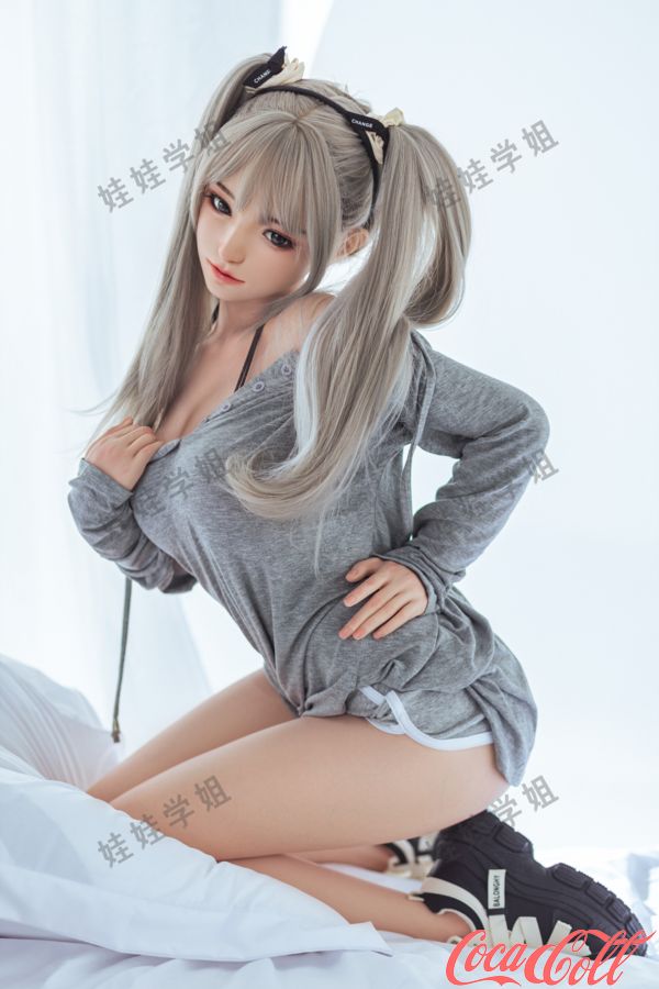 148cm/4ft9 C-cup Mengyin Gray Ponytail Asian Silicone Head TPE Body Sex Doll