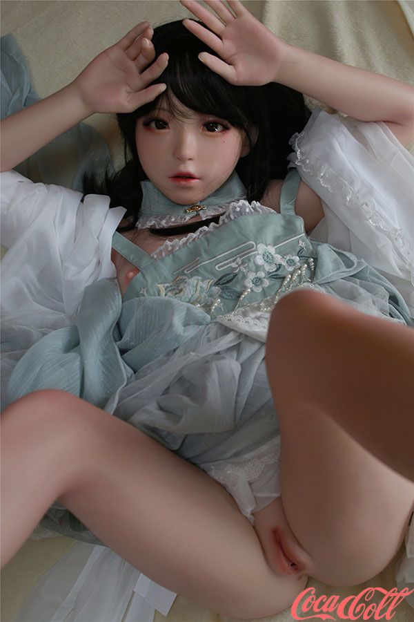 136cm/4ft5 A-cup #8 Adorable Bean Green Tang Suit Asian Silicone Head TPE Body Sex Doll