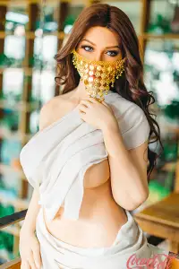 With her cascading wavy brunette hair, mesmerizing blue eyes, plump lips, and that magnetic, sultry confidence, Adele looks like pure temptation brought to life. Standing at 165cm tall with stunning G-cup curves, this huge breasts sex doll drapes herself in soft, flowing grey fabric that clings and reveals her toned waist, full bust, and smooth skin in the most seductive way. Full silicone with lifelike texture makes her warm, supple, highly poseable, and exquisitely detailed.