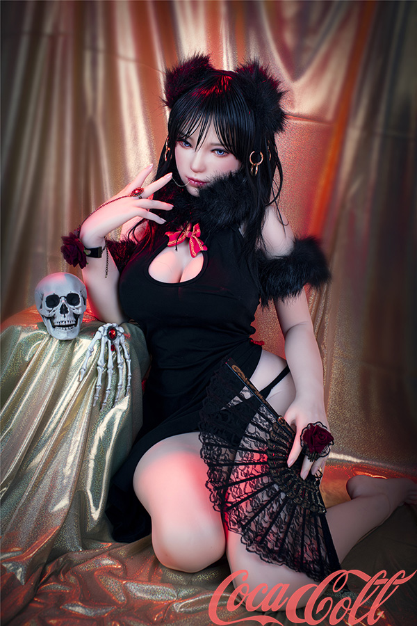 This sex doll can be described as a perfect embodiment of the term "devilish." Her black hair cascades naturally down her chest, while her exquisite facial features resemble a living work of art. The light blue eyes, like precious sapphires, seem to reflect the desires within your heart. Her faint smile, more accurately described as a provocation, hints at a tantalizing allure. Only those bold enough to approach and engage in close proximity with her will earn her appreciation. Taking inspiration from the traditional Japanese geisha, we present this full size sex doll. Except for her graceful posture, we aim to portray her deadly charm. This doll is adorned with fluffy black fur on her head, neck, and arms. She embodies a bewitching enchantress, as if a magical fox transformed into a human girl, eagerly awaiting those men whose will is not resolute enough to fall into her embrace. If you believe you have the ability to conquer this evil yet captivating villain, then bring this Japanese sex doll home.