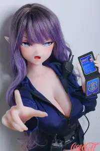 With her flowing purple hair, striking pointed elf ears, piercing blue eyes, and that confident, parted-lip smirk, Shibata Haruka steps out of a thrilling anime fantasy as your personal SWAT enforcer. Standing at 148cm with eye-catching E-cup curves, this petite anime sex doll rocks a unzipped dark blue tactical jacket, utility belt, thigh straps, and shorts that accentuate her slim, athletic yet busty figure. Warm, supple platinum silicone skin feels incredibly realistic — lightweight, easy to pose, and loaded with seductive, authoritative details.