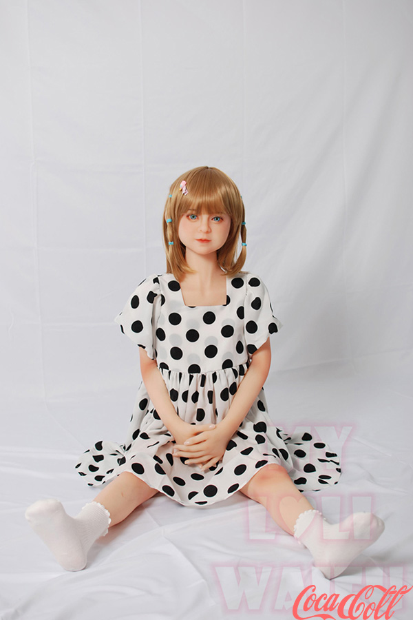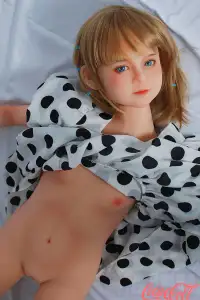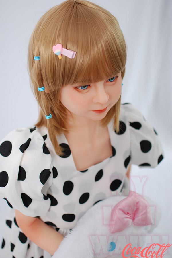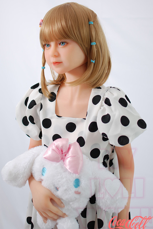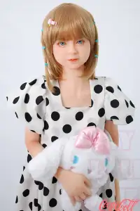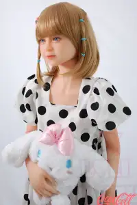 With her short bobbed blonde hair adorned with playful clips, big innocent blue eyes, and that gentle, doll-like expression, JULIE captures pure cuteness. Standing at just 126cm with delicate A-cup proportions, this tiny petite sex doll wears a charming polka-dot dress with puff sleeves, hugging her lightweight, easy-to-carry frame while clutching her fluffy bunny plush for extra adorableness.