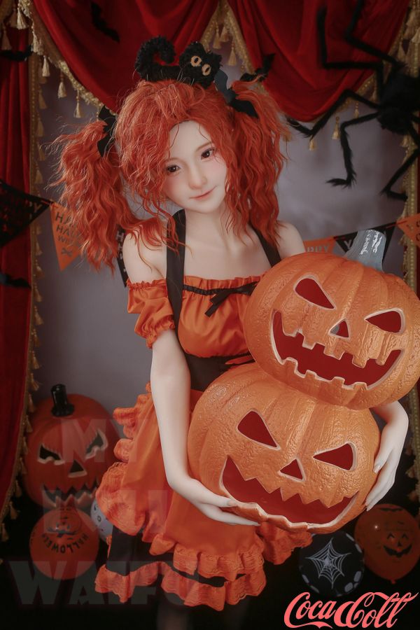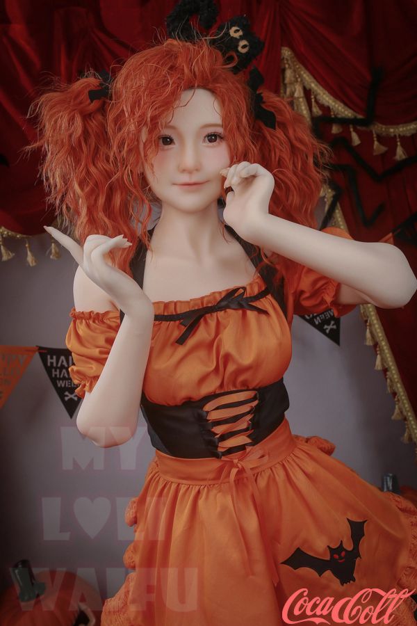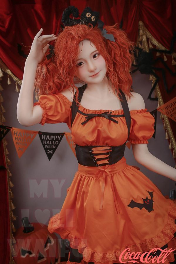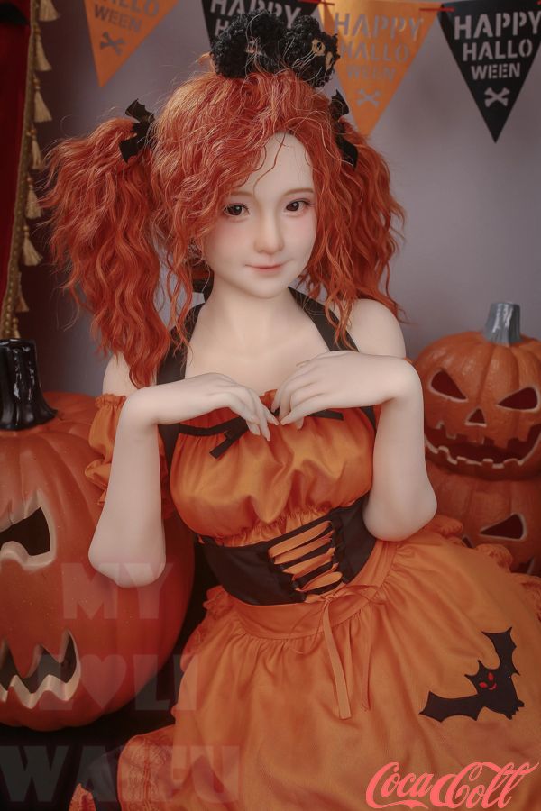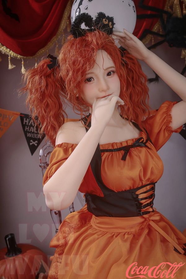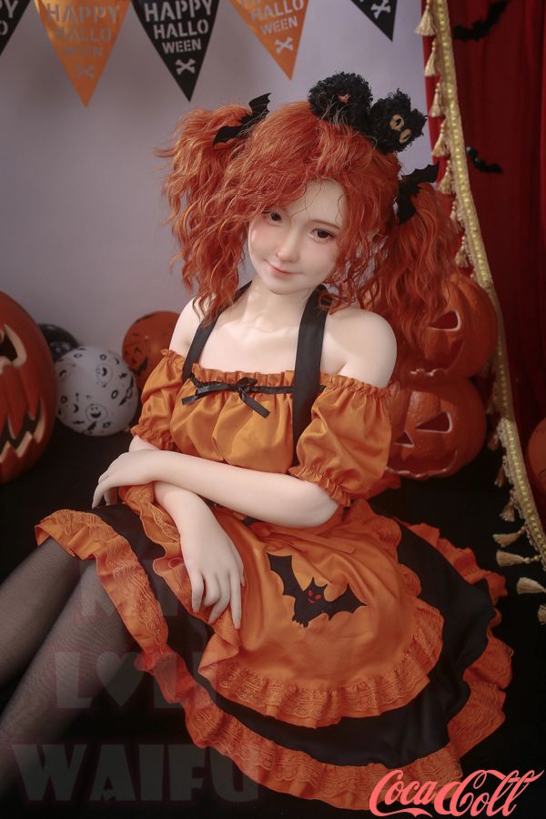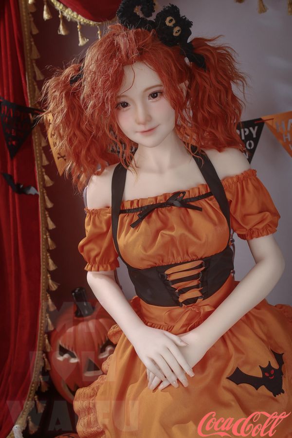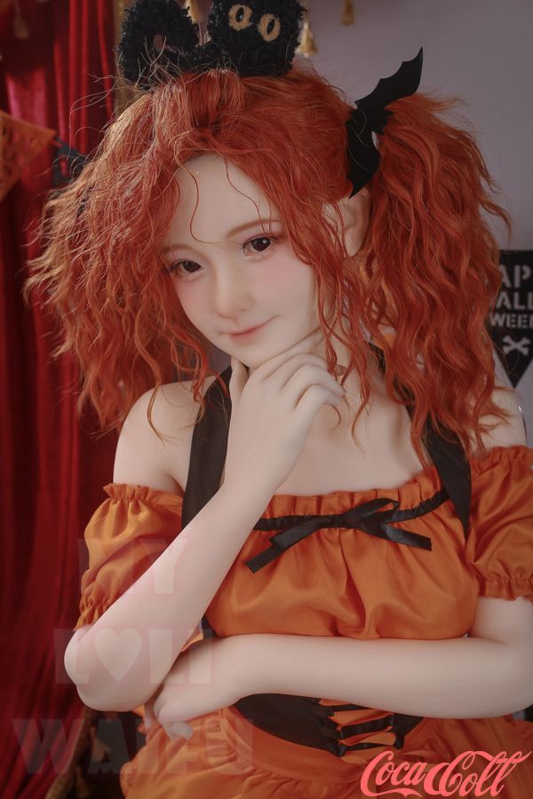 148cm/4ft9 B-cup Rena Orange hair Soft Silicone Head TPE Body Sex Doll