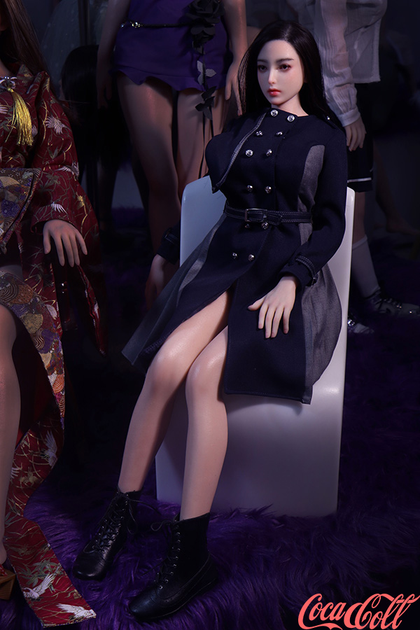 70cm/2ft2 Large Breasts Elegant Black Coat Silicone Sex Doll Head Yunzhu