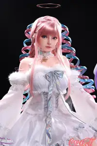 With an angelic halo above her head, the white sex doll appeared like a fairy, suddenly descending into your life in a blinding white light. The pinkish-blue long hair is twisted into buns and hangs down on both sides of the head. There is a lock of hair on each side of the face to complement the overall look. She was wearing a white lace dress that hugged her body, sitting on a transparent chair, her posture arrogantly looking down at you. However, in her life with you, she still willingly adapts to your lifestyle and needs. However, in her life with you, the curvy love doll still willingly adapts to your lifestyle and needs. After you take off all her clothes, that proud face always shows a hint of shyness and allure. She is ashamed to reveal herself, but there is a faint expectation in her heart for the joy you bring her. Just hand over all your enthusiasm and desires to her. When she falls in love with this feeling, you will live in happiness every single day.