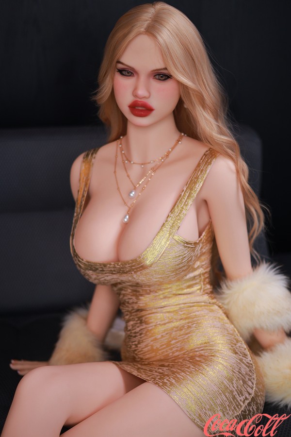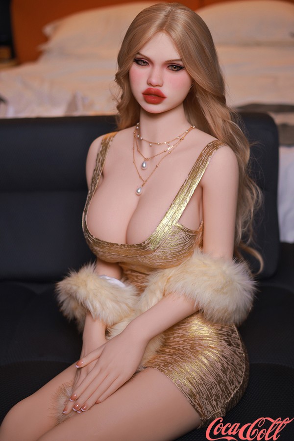 Clad in a shimmering, form-fitting golden dress that accentuates every curve of her figure, and draped with a matching faux-fur stole over her arm, the lifesize sex doll exudes an aura of elegance and captivating allure. Far from overshadowing her radiance, the vibrant hue of her gown actually serves to highlight her rosy complexion and impeccable vitality—ensuring that she looks her absolute best from every conceivable angle. This is the persona she presents to the public; yet, there is another side—one that sets the blood racing—which only you are privileged to witness: the moment her cheeks flush crimson and her face becomes suffused with unbridled desire. With unexpected gestures and smoldering glances, this blonde real doll reveals to you—in every passing second—the depth of her yearning for you. To her, you are someone special, and thus she grants you special privileges; you may touch her intimately, kiss her, and indulge in her to your heart's content.