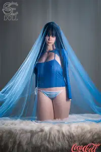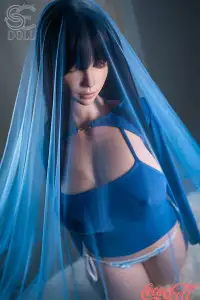 The silicone sex doll stood gracefully by the bedside, with its black hair flowing loosely around her. She is wearing a blue spaghetti-strap top which accentuated her graceful figure and made her ample breasts more prominent. When her captivating eyes were slightly closed, her long, curled eyelashes and slightly parted lips drew the eyes. In addition, a sheer veil of blue gauze enveloped her entire body, making her resemble a docile real doll waiting silently for someone to lift it away and enjoy her charm. Her silicone material renders the buttocks and internal soft, delivering an ultimate sexual experience. She is small and easy to move and grip, and can fulfill your needs in various positions. You can also dress her in different outfits, allowing her to role-play various characters alongside you in different settings and enjoy a variety of unique experiences.We also offer personalized customization services, including various dimensions such as chest circumference, waist circumference, shoulder width, arm length and so on. If you would like to experience additional features, you can pay to upgrade with options including a movable jaw, sound effects, or heating etc.