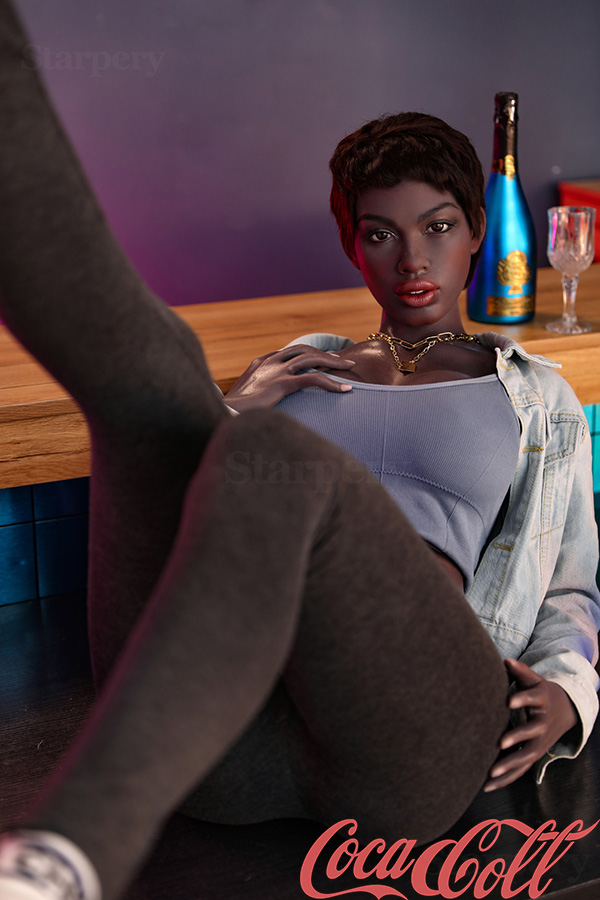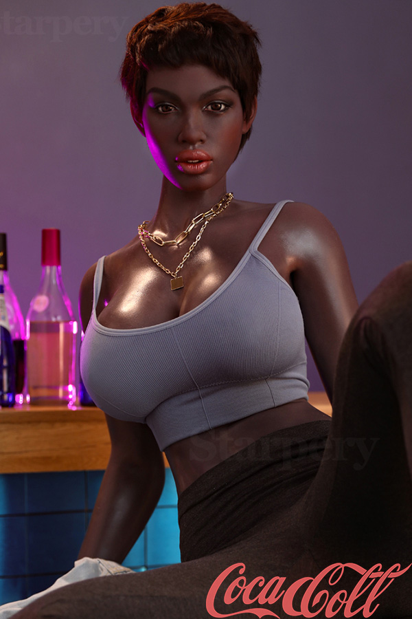 This ebony doll boasts a luminous skin that resembles melted chocolate glistening under the sun, tempting one to take a bite. She is like a freshly retrieved black pearl from the water, inviting one's touch and caress. Clad in a simple fitness attire, this doll's graceful physique displays the fruits of her workout efforts. What sets this black sex doll apart is her remarkable height, complemented by a generous G-cup bosom, which creates a visually enjoyment. Such proportion is rarely found in real individuals. Many doll enthusiasts have struggled with the firm texture of silicone sex doll heads, which hindered their desires for oral sex. However, this doll overcomes that limitation. Can you imagine the wild allure of her plump, red lips as they provide you with an exhilarating blowjob? Standing tall at an impressive 174cm, this tall sex doll allows you to enhance your pleasure in shared moments by dressing her in garments that ignite your desires most, as her height accommodates most women's clothing available in the market.