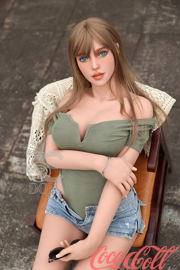 The girl in the picture hails from the warm city of Miami. Just like the city's ambiance, she possesses a passion and madness that will undoubtedly surprise you. She gathers a portion of her golden hair into a bun on the top of her head, while the rest gently cascades down behind her. When sunlight shines from the side, it appears as if a golden waterfall is flowing. Her eyes are the Miami harbor, for they hold the clarity of blue seawater. Her attire is casual, but do not underestimate her charm. Her F-cup breasts seem unwilling to be constrained by her bra, almost desiring to be fully exposed before your eyes. I guarantee that when you witness such explicit sensuality, you won't be able to resist caressing with your hands. The soft and elastic touch of this big boobs sex doll will not disappoint, as she is crafted from high-quality TPE material. The level of softness allows you to not only explore with your hands but also with your "stick" the other intimate parts of her tight body. Apart from her bra, she wears low-rise jeans. You can observe how her waist is scarcely wider than an A4 paper. Perhaps due to the scorching weather, she begins to remove her heavy pants, generously revealing her figure to you. You can witness her visually striking, rounded and perky buttocks, which harmoniously coexist with the rest of her body. If you have erection to this curvy sex doll, you can boldly request her to do something, and what she can make up to you is to help you reach climax time and time again.