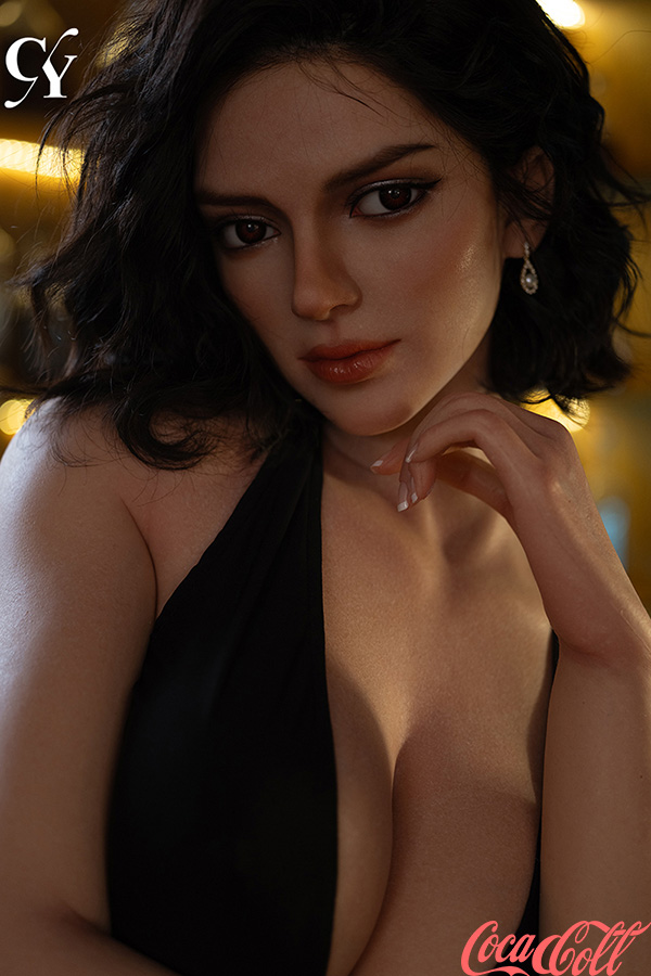 With her chic short wavy dark hair, intense smoky eyes, full lips, and that irresistible confident gaze, Hannah looks ready to steal the night. Standing tall at 176cm with eye-catching E-cup curves, this statuesque premium silicone sex doll boasts a sleek, voluptuous figure perfectly hugged by a daring black halter dress that showcases her deep plunge neckline and elegant form. She's crafted from high-end silicone for ultra-realistic touch — soft, warm, supple, and detailed in every sensual curve.