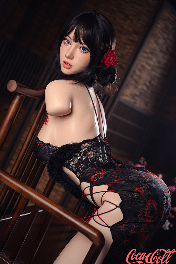 With her long silky dark hair adorned with a red flower, mesmerizing blue eyes, delicate features, and that inviting pouty expression, Wenwen embodies pure temptation in compact form. At just 107cm (full torso), this Asian torso sex doll boasts graceful B-cup curves wrapped in black lace halter lingerie with red floral body art, fur choker, and daring cut-out details that highlight her smooth skin and intimate proportions. She's ultra-lightweight, easy to maneuver and store, and packed with seductive realism in every curve.