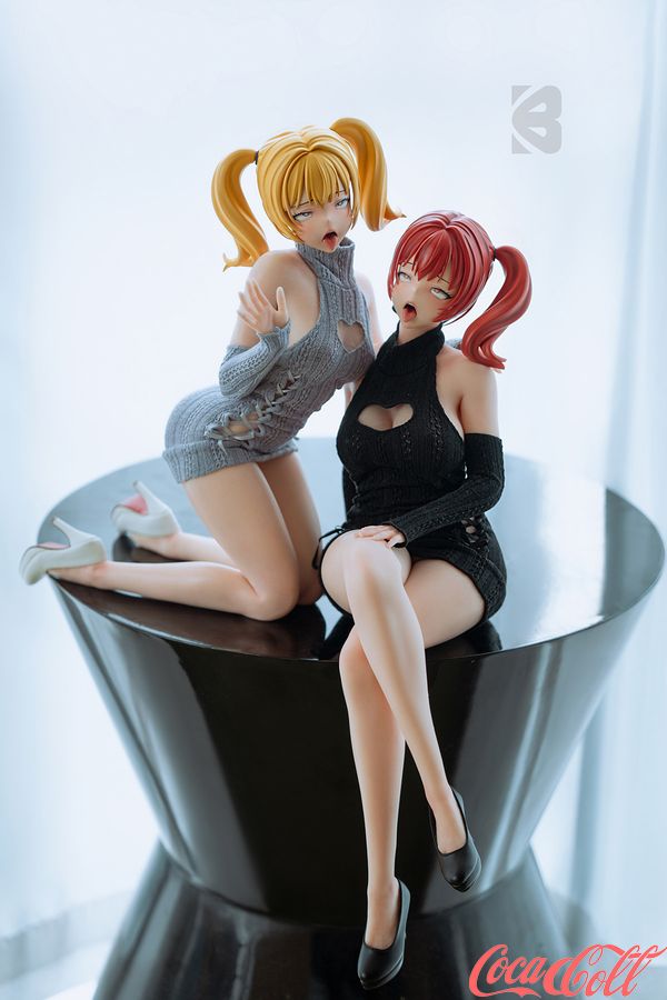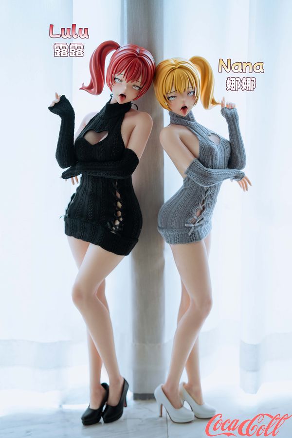 60cm/2ft B-cup Nana + E-cup Lulu Unsatisfied Sweater Sisters Silicone Sex Doll