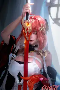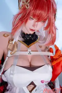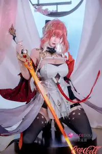 Changli is a character featured in the game Wuthering Waves and its related media. The real doll featured today is modeled after her; she possesses long red hair styled into a flowing ponytail; the flame-hued tips of her hair sway gently behind her—reminiscent of the tail feathers of a mythical spirit bird—lending her an air of languid ease. She adorns the sides of her hair with golden, triple-ringed ornaments, while her golden eyes feature concentric black rings encircling her dark pupils. Influenced by her Resonator abilities, her complexion is flushed—her skin tone appearing notably more rosy than that of an ordinary person—and she invariably wears a gentle, amiable smile. In terms of attire, the celebrity love doll dons an outer robe dominated by a color palette of red, white, and black, the hem of which is split into several distinct sections. She is a gentle, patient, and resourceful individual who treats others with warmth and attentiveness; she is adept at sensitively attending to every nuance of another person's emotions, making interactions with her feel effortless and comfortable—much like basking in a gentle spring breeze.