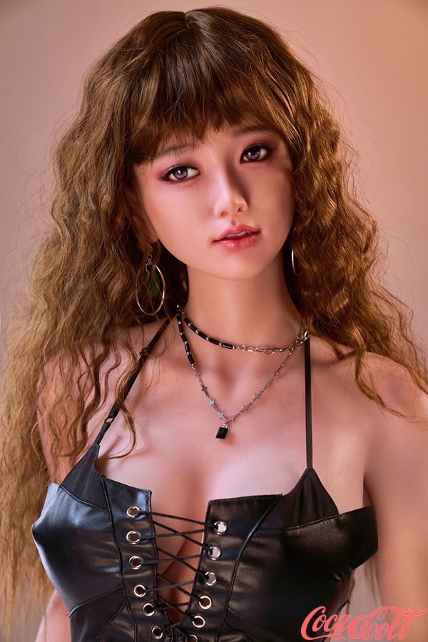 158cm/5ft2 E-cup Cute Wool Curly Leather Jacket Girl #41 Silicone Sex Doll